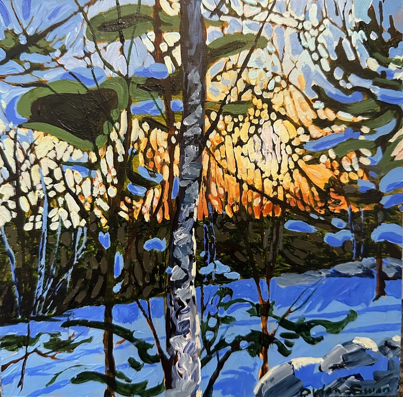 This painting gets made between massages, in my studio/clinic in town, while I live in an RV on a piece of land where I’m trying to build a house.